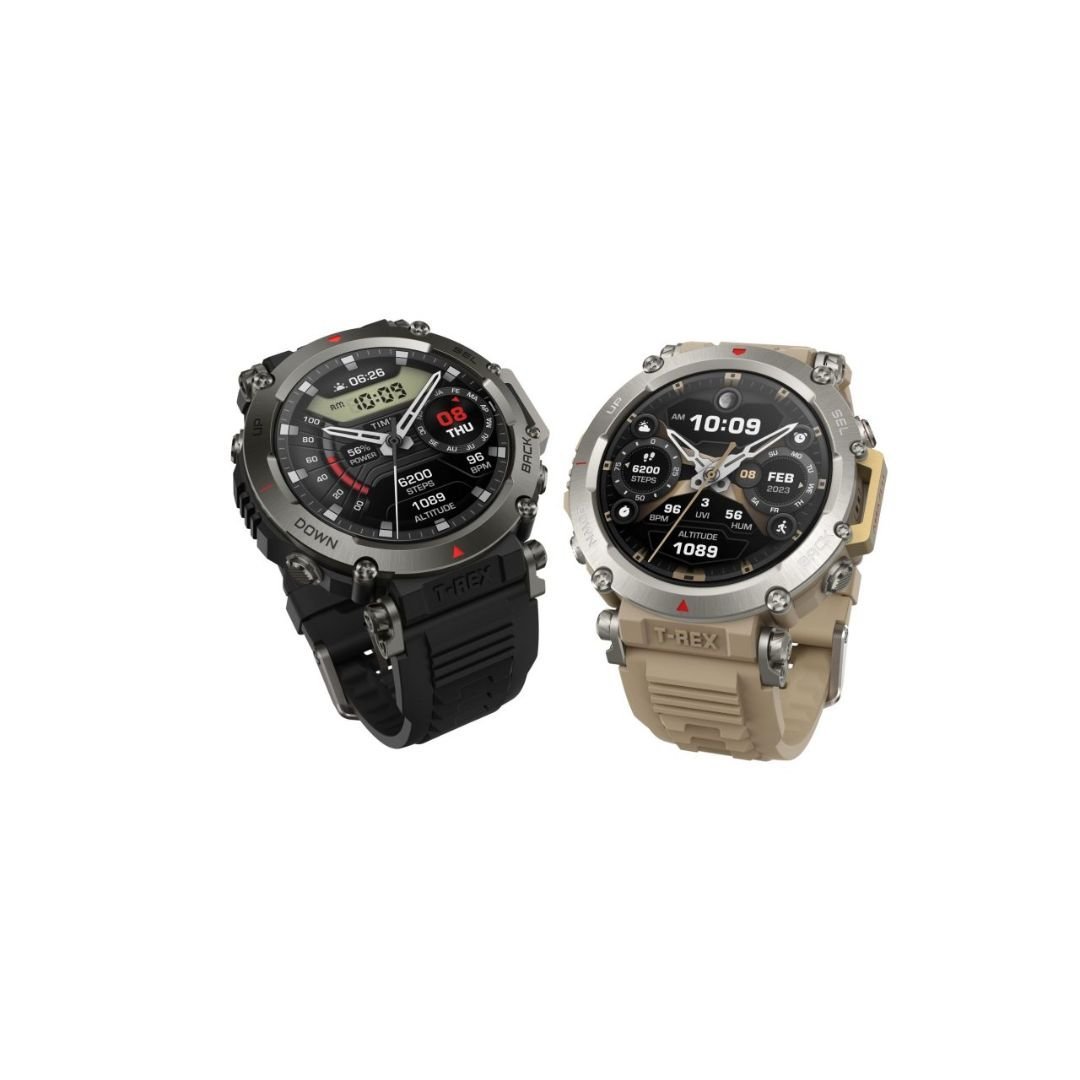 - Prepared for Any Adventure: Brave your journey with the T-Rex Ultra smartwatch adventure features including – Compass, Air Pressure, Altitude, Altitude SpO₂, Sunrise / Sunset, Ocean Tides, Storm Warning Alerts, and Freediving Water Temperature