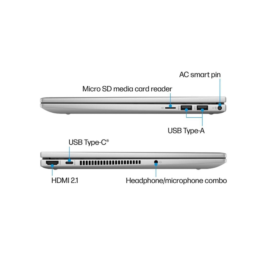 Ports: 1x USB Type-C® 10Gbps signaling rate (USB Power Delivery, DisplayPort™ 1.4, HP Sleep and Charge) | 2x USB Type-A 5Gbps signaling rate | 1x Headphone/microphone combo | 1x HDMI 2.1 | 1x AC smart pin