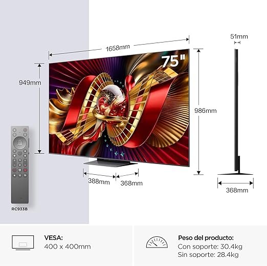 TCL TV 75C8L 75″ SQD-Mini LED, 4K HDR 5500 nits Google TV
