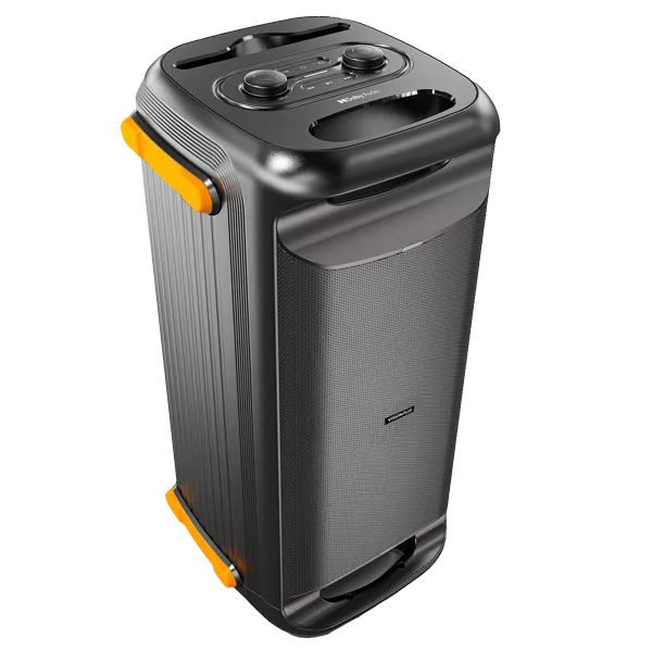 For added convenience and entertainment, a wireless microphone is included, making this speaker ideal for karaoke, announcements, or presentations. The TWS (True Wireless Stereo) connectivity allows you to pair two of these speakers together for a truly immersive stereo sound experience.